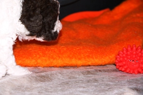 Celio hat schon ein 1.Geschenk von seiner neuen Familie bekommen. Ente und Schnuffeltuch nehmen hier Mamas Geruch an und werden dann später mit ins neue Zuhause genommen.